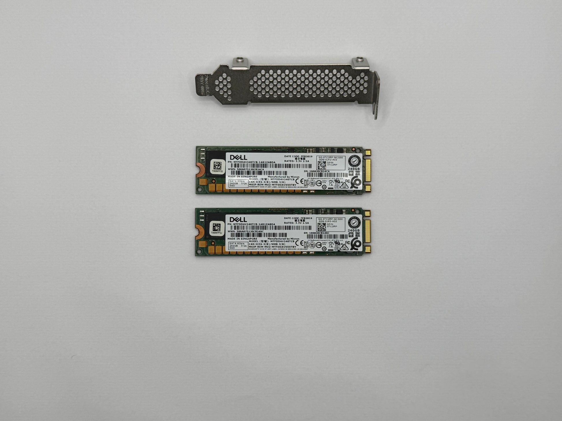 - 2x 240GB Dell NVME SSDS (included, used, tested OK)